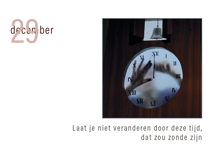 Een terugkerend thema is tijd. Voor veel ouderen verandert de ervaring van tijd ingrijpend. De toekomst verliest aan vanzelfsprekendheid, terwijl herinneringen dichterbij komen en het heden zwaarder gaat wegen. In de uitspraken verschuift de focus van wat nog moet komen naar wat er nu is. Dat verklaart ook de vorm van de kalender: Wat hoop je? is opgezet als een eeuwige kalender, zonder jaartal. Niet om af te tellen, maar om elke dag als een afzonderlijk moment van aandacht te benaderen.